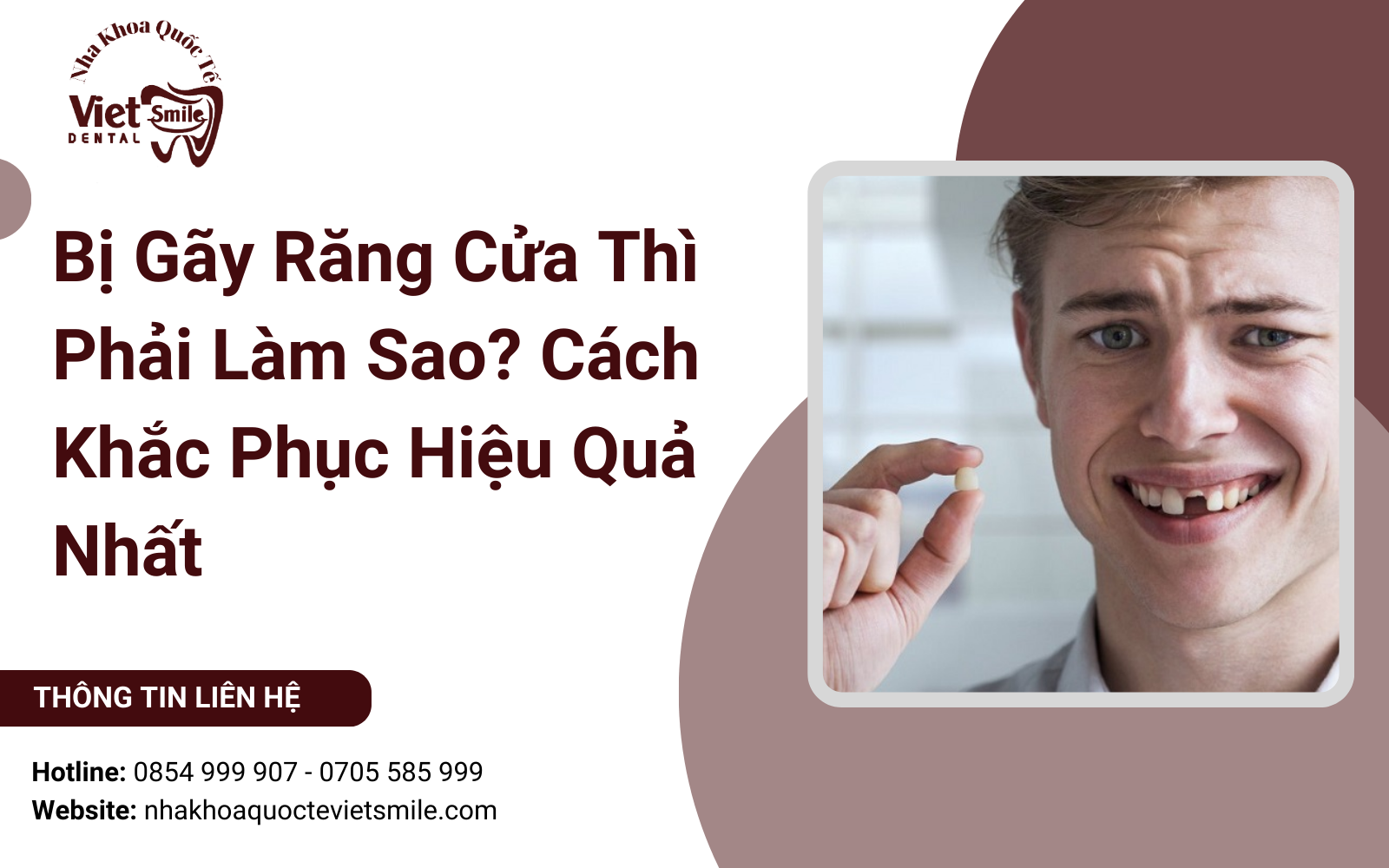 Răng cửa không chỉ đảm nhận chức năng cắn xé thức ăn mà còn là "mặt tiền" quyết định đến 80% tính thẩm mỹ của toàn bộ khuôn mặt. Khi gặp sự cố tai nạn hoặc va đập mạnh dẫn đến sứt mẻ, gãy vỡ, tâm lý chung của mọi người thường là hoảng loạn và lo lắng không biết bị gãy răng cửa thì phải làm sao. Việc xử lý chậm trễ hoặc sai cách không chỉ làm mất đi nụ cười tự tin mà còn tiềm ẩn nhiều rủi ro cho sức khỏe răng miệng lâu dài. Bài viết dưới đây từ Nha khoa Quốc tế Việt Smile sẽ cung cấp cho bạn lộ trình khắc phục toàn diện và hiệu quả nhất.