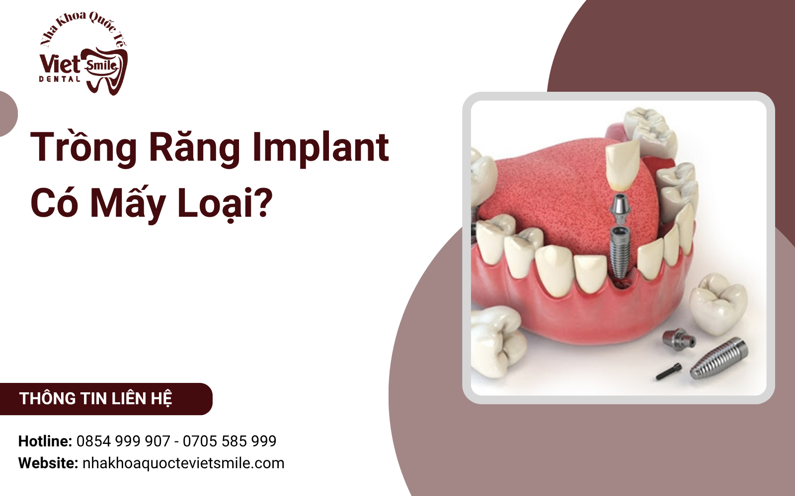Hy vọng với bài viết chia sẻ về chủ đề trồng răng implant có mấy loại trên, bạn đã biết được có bao nhiêu loại phương pháp trồng răng Implant và tùy thuộc vào tình trạng cá nhân bạn hãy lựa chọn phương pháp phù hợp cho mình. Nếu như muốn tìm hiểu kỹ về phương pháp nào trong số các phương pháp trên hay còn thắc mắc về bất kỳ vấn đề về răng miệng nào khác, bạn hãy liên hệ ngay với Nha khoa Quốc tế Việt Smile để được bác sĩ tư vấn trực tiếp và cụ thể nhất nhất nhé.
